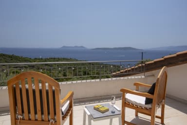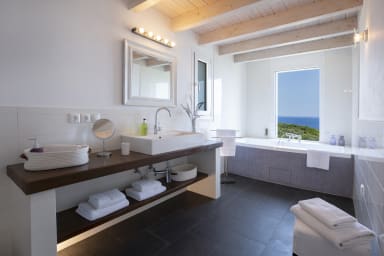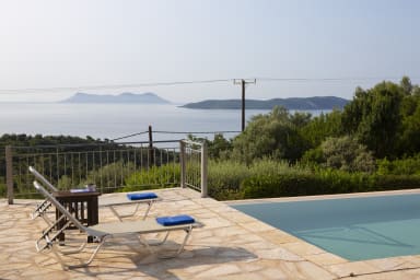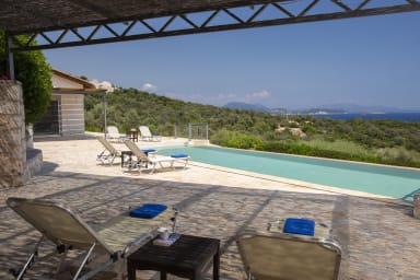 The villa is located 2.5 km from the village of Sivota, Lefkada, with beautiful views over the Ionian Sea and its islands. Please note that the last 1000 meters leading up to the villa are non-paved.