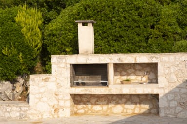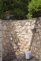 Extended stone terrace, barbecue grill and large shaded dining area (comfortable seating for 8-10 people), nicely shaded pergola surrounded by lavender and rosemary bushes, large private pool with overflow (12m x 4m), outdoor shower, small secluded morning terrace behind a little rose garden - perfect for your first cup of coffee while watching the sun rise.