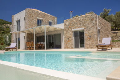 Nestled at the tranquil entrance of Sivota Bay, this luxurious 3-bedroom villa is a stunning retreat for those seeking the perfect blend of relaxation and modern elegance. Situated on a picturesque coastline, this villa offers breathtaking views of the Ionian Sea and the verdant landscape of Sivota.