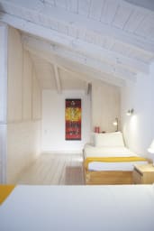 Une chambre en sous-pente, ouverte sur le séjour avec 2 lits jumeaux.
