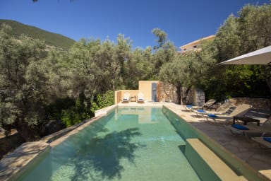 Directement sur la plage de Sivota, piscine privée et équipements haut de gamme raviront votre séjour à la villa Amoudia
