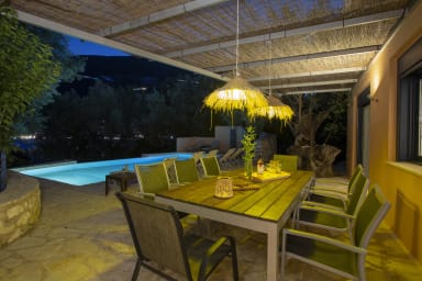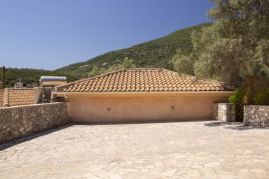 Vous arriverez à la villa Amoudia par une petite route qui monte quelques mètres au dessus de la plage de Sivota. Une place de stationnement et un garage sont à votre disposition. Juste après, une charmante cour privée avec un bel olivier vous invite à entrer. Après avoir passé la porte, une grande baie vitrée vous donne de suite l'ambiance : terrasse ombragée avec espace repas qui se prolonge par la piscine à débordement (de 8 m par 4 ) et vue splendide sur le port de Sivota. Juste à coté, à l'ombre d'un très bel olivier centenaire, se trouve une table avec barbecue électrique. Autour de la piscine quelques chaises longues vous attendent, un escalier en pierre vous mène à la terrasse de la chambre du rez-de-jardin et à l'accès mer par un cheminement au milieu de magnifiques oliviers.