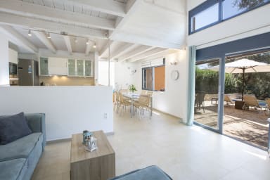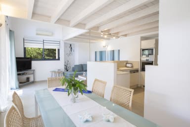 Le salon, salle à manger ouvert et très lumineux avec de grandes ouvertures où il fait bon vivre et s'y reposer. Cuisine entièrement équipée, Salon : TV satellite, connexion Internet Wi-Fi, ...