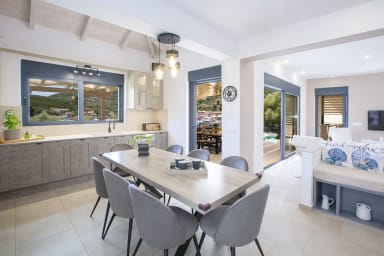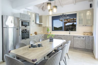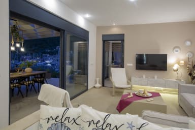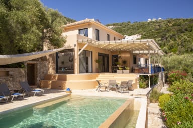 Avec ses 220 m2, la Villa Sivota est la plus grande des villas du ponton. Elle est exceptionnelle: située plein sud, juste au dessus d'une petite plage, et à 5 minutes des commerces et tavernes du charmant village de Sivota. Elle est idéale pour ceux qui veulent le luxe, le charme, l'intimité et le confort. Conçue avec des normes élevées et située dans un endroit magnifique, tout est prévu pour y passer des vacances de rêve. Elle est équipée des technologies de dernière génération et possède même son propre cinéma privé qui la rend unique en son genre. A 2 minutes, possibilité de louer une place au ponton pour un bateau (la réserver à l'avance).