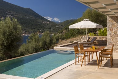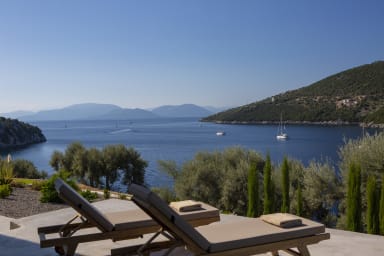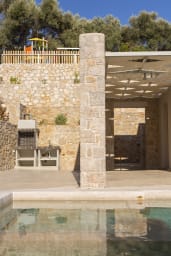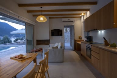 Nouvelle villa en pierre construite au milieu des oliviers verts, entourée par la riche végétation naturelle du cap Sivota, vous enchantera avec la vue sur la baie à droite et la mer ouverte à gauche. Admirez les beaux voiliers qui passent, sculptant le souvenir de vacances dont on ne peut que rêver... Le design contemporain de l'intérieur, la lumière naturelle du soleil provenant des grandes fenêtres et les murs de pierre réchauffant votre vue, ajouteront une touche méditerranéenne énergie et beauté à votre séjour.