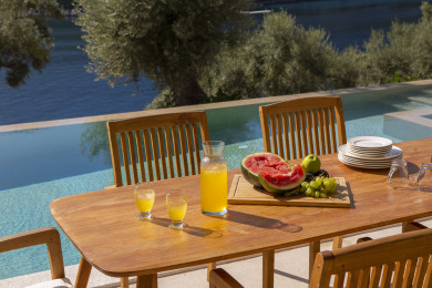 La villa est construite sur un seul étage, mais les pièces à plusieurs niveaux donnent une impression d'espace et une conception de structure unique. La proximité de la mer en fait le lieu de séjour par excellence. Buvez votre café le matin au bord de la piscine à débordement et laissez le bruit des vagues et des cigales vous remplir d'une énergie rajeunissante.