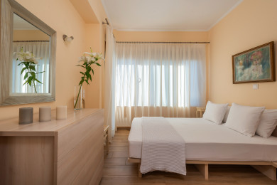 Marine Villa est une villa exclusive avec accès privé à la mer, un hommage à l’élégance : la piscine à débordement se fond visuellement dans la mer Ionienne, des matériaux naturels aux tons chaleureux et de larges ouvertures vitrées qui effacent la frontière entre intérieur et extérieur. Ici, l’architecture ne rivalise pas avec la nature — elle la met en scène avec intention.